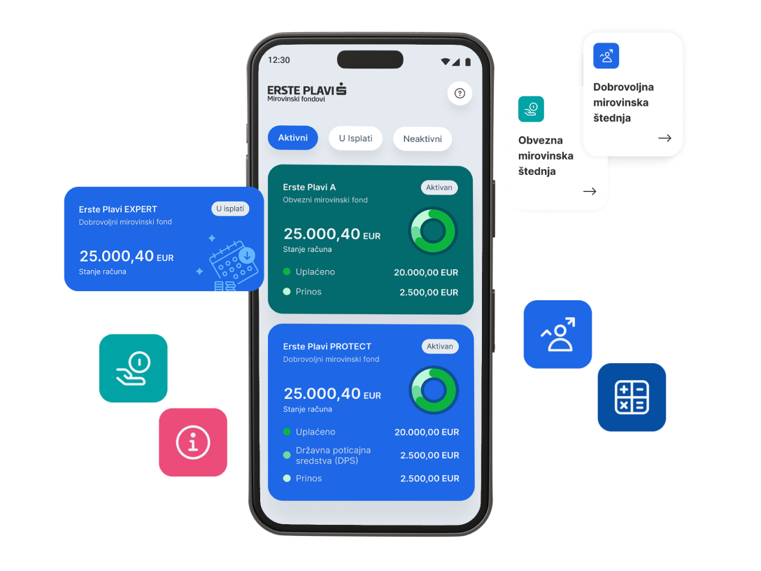 Osigurajte si budućnost kroz Erste Plavi dobrovoljnu mirovinsku štednju te iskoristite državna poticajna sredstva kako bi Vaši uloženi novci uz dobitak omogućili mirovinu bez stresa.